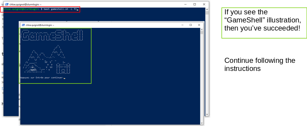 GameShell works under Linux and Mac for sure (Windows coming soon?), or on the I2BC cluster (after the I2BC cluster training session).